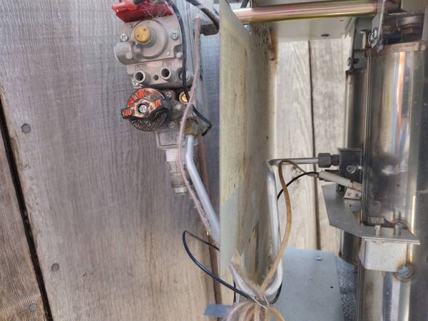 NATURAL Gas, Double sided heater. Late model with full safety shut off. Top Vent. Wall thermostat controlled. Includes header.
