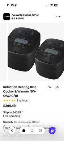 Brand new/never opened still in box. 5.5 cup capacity flat-top induction cooker and warmer with custom cooking pan, double non-stick coating for easy clean-up (black)
