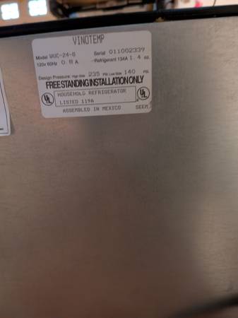 24-30 bottle wine fridge, holds optimum temperature well. Very clean and in good condition. Free standing model.24 h x 21 d x 18.5 w