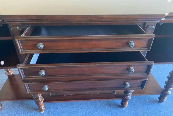 Traditional sideboard with drawers and cabinets. Silverware drawer with cloth. Cosmetic scratches, good condition, Ashley furniture. Heavy, nice drawer pulls. Cash or Zelle, pickup only please be...
