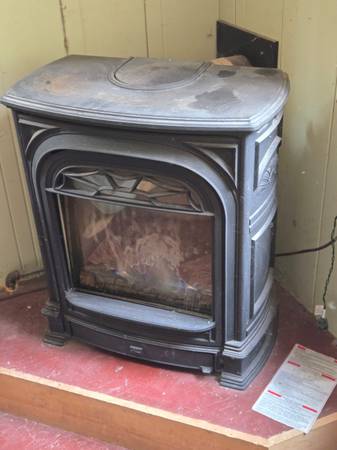Works fine, purchased new about 15 years ago +/-. Black cast iron body, very high quality heater. Comes with back exhaust pipe and approximately 4' exterior riser and thimble. Easy access for transportation, disassembled and ready to go. We can't deliver. but it's light and small enough to fit in a sedan.