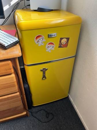 Mini fridge with wheels in the rear Call or text George