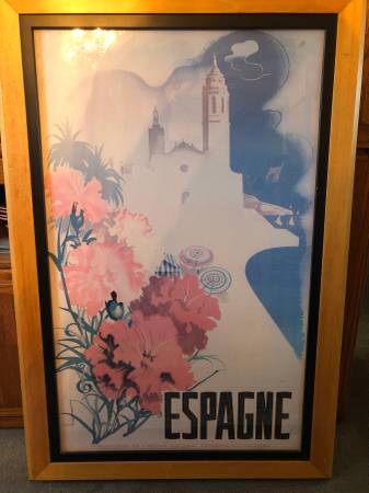 Large Framed Vintage Travel Art Poster ESPAGNE / SPAIN