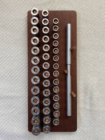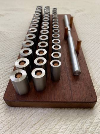 Jewelry making equipment: Wax ring mandrel set. Very useful for carving/building wax ring models. 41 mandrels/sizes. Stainless steel, with handmade wood board. Beautiful, excellent quality. Like...