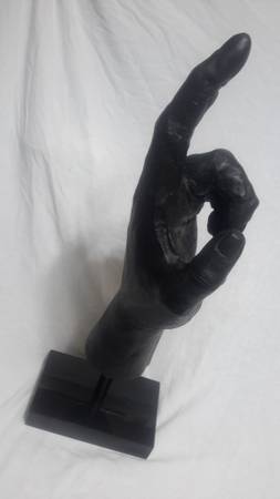 Large 25" heavy cast bronze black 'Pointing Figure Hand Sculpture with black marble base. Retails for $498-575. Excellent condition. Dynamic piece for entry or center piece.
