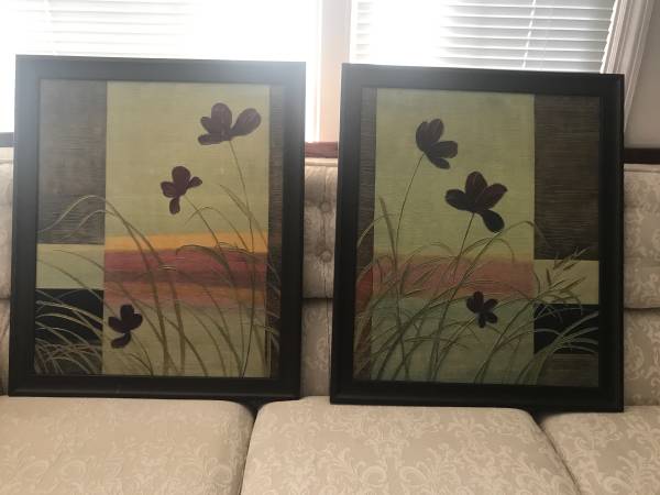 Brush Strokes contemporary design framed flowers art work Like new condition office, conference room, living room, waiting room