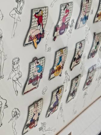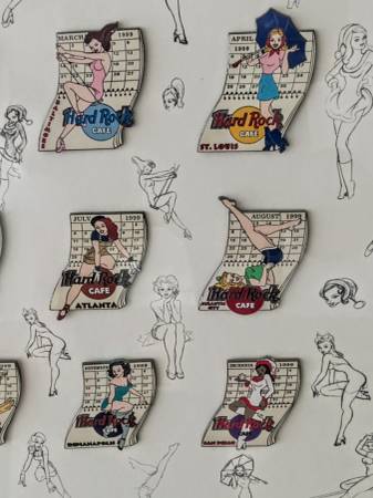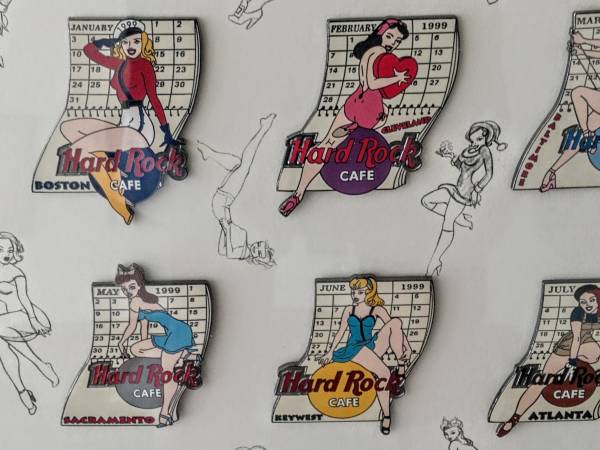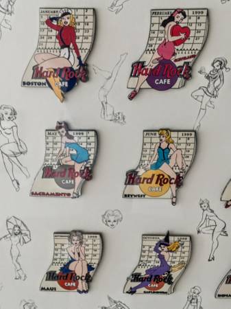 NO SHIPPING AVAILABLE PICK UP ONLY IN DISCOVERY BAY Limited edition Hard Rock Cafe pin up girls calendar. Consists of 12 pin up girl pins from all different cities in the USA. 23" x 24" Originally...