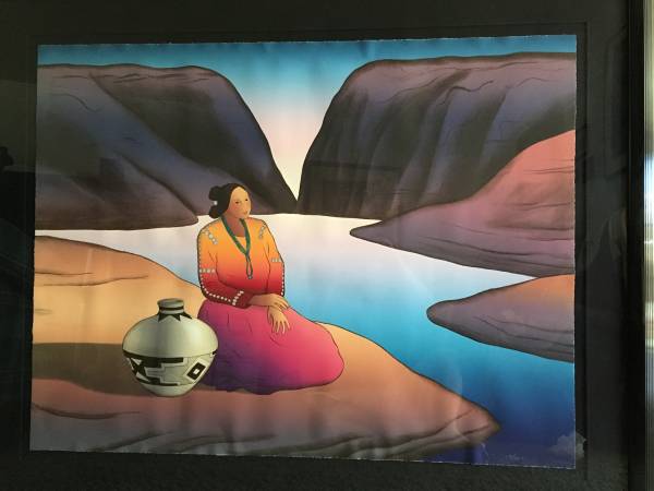 R.C. Gorman: Canyon Woman Lithograph limited edition of 225 1989. 30"X39" One of three, a triptych, including: Canyon Woman, Waterfall and Woman at the Lake. I have all three including all...