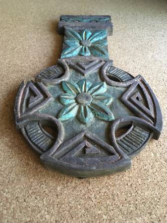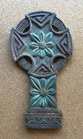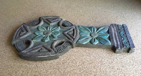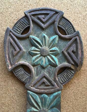 Large Vintage Celtic Hand Carved Wood Panel Total Height 17.13/16 inches Total Width 9.5 inches Total Depth 0.7/8 inches