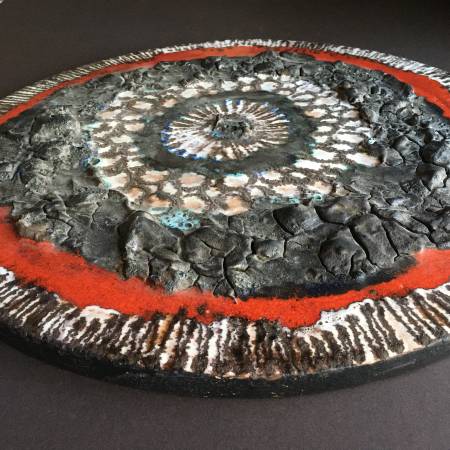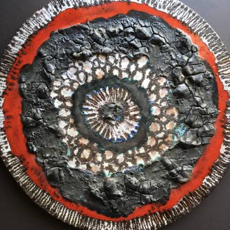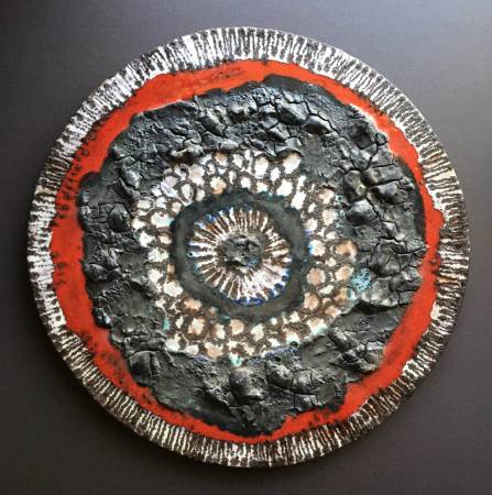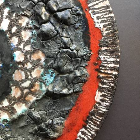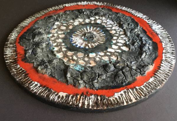 Large Vintage Ruscha Handgemalt Lava Glaze Pottery Artwork Wall Mountable Ceramic Pottery Sculpture with Multicolored Lava Glaze. Manufacturer: Ruscha, Rheinbach, Germany Markings: 786/2 Ruscha...