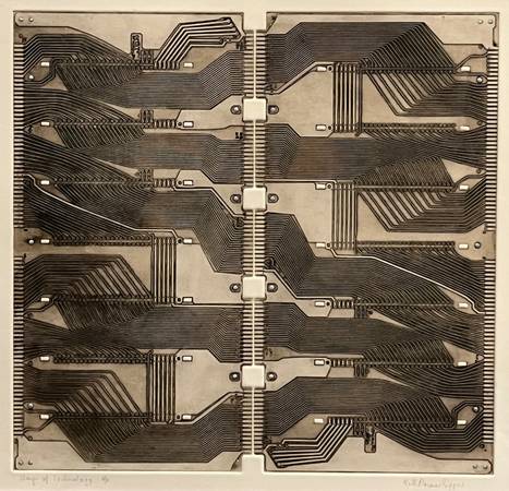 Vintage Artwork Collagraph from Printed Computer Circuit Title: Wings of Technology Artist: Ruth Dosmar Sipper Medium: Paper. Collagraph from Printed Circuit Signed: Yes Artist Proof: Yes Framed:...