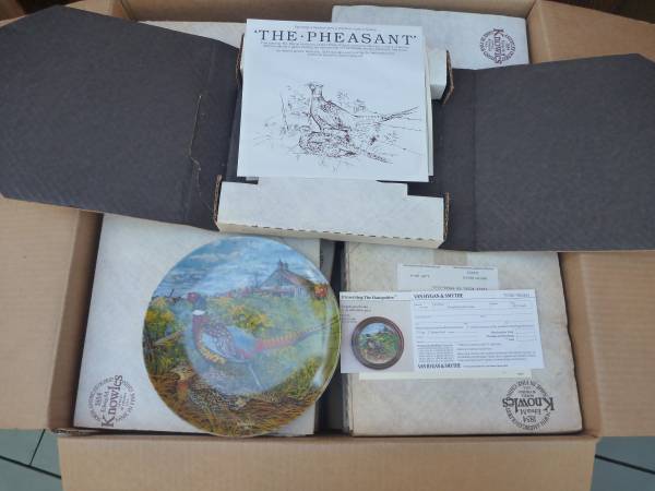 I have a big box full of Collectors Plates. This box holds 35 plates. Edwin M. Knowles 1854 is North America's oldest name in fine china of Newwell West Virgina, USA. These plates have a variety of themes. Classic Movies, Christmas, Norman Rockwell themes and many others. They have been in storage upon delivery, passed down to me and went to storage and now it is time to go.