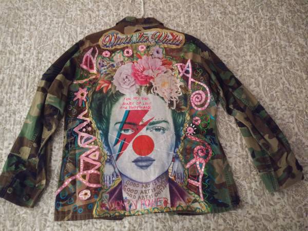 Military Camouflage Jacket Frida Kahlo Hand Painted M - $200