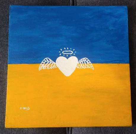 Ukraine Peace & Love Flag Art Painting Signed - $35 (San Francisco)