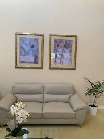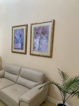 I am selling a Pair of Z Galleries, glass framed contemporary wall art, size 43” X 35”, which are in excellent condition and kept in a smoke and pet-free environment. In-store, you will find this set very expensive plus tax as well. These are Great pieces with a great price to add to any decor. The posted picture is not showing the right colors but in reality, this is much more beautiful than this picture.