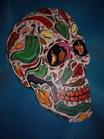 Peppers Spicy Skull Art Dia de Los Muertos Painting - $350 (hercules, pinole, san pablo, el sob)