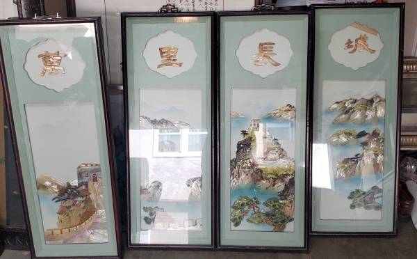 4 Pieces of the Chinese Traditional Art Great Wall 3D Conch Carving Art, Chinese Art