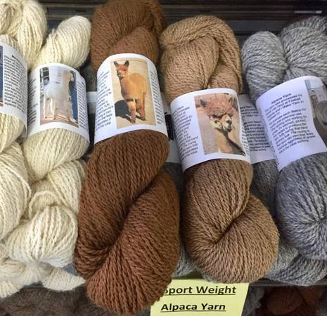 This alpaca fiber (blankets/raw fleece, roving and yarn) is wonderfully soft and will make beautiful sweaters, scarves and other apparel.