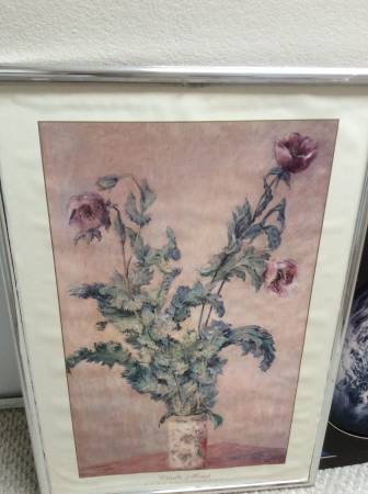 Golden frame with plexiglass-20”x29”- $10 Aluminum without glass-24”x37”-$10 Aluminum square frame without glass 26.5x26.5 -$8 Wooden with glass 12”x15”-$5