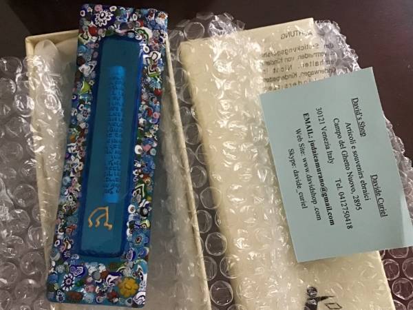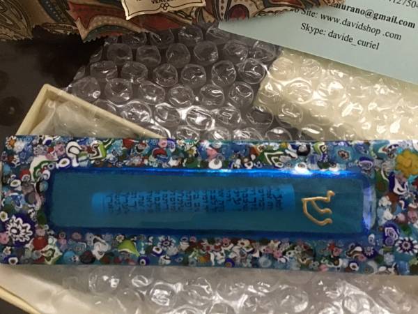 5.5”x1.5” Mezuzah Murano glass in original box and package. Excellent gift