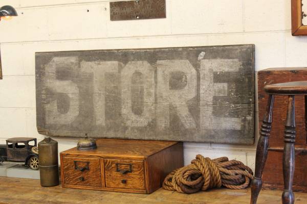 I'm selling this early, general store "Store" smaltz sign dating to approx 1870s - 1900s. This piece possesses a wonderful patina from more than a century of use. The sign compromises a hand-painted single piece of wood. This item features wear commensurate with age including worn paint, dings, dents, scratches etc. Structurally, it's solid and ready to be hung.