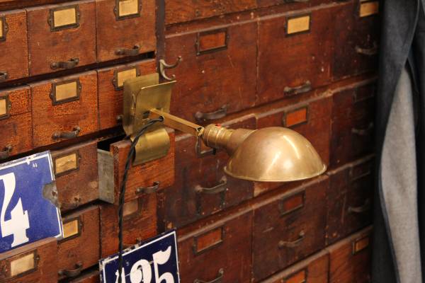 I'm selling this vintage brass clamp-on Adjusto Lite in excellent working condition and dating to approx the 1930s - 1940s. This piece was manufactured by Farberware in Brooklyn, NY. The original patinated brass finish and overall condition of this light is very good with wear commensurate with age including scuffs, marks, finish wear etc; which all add to the character and authenticity of the piece. Rewired with era-correct style twisted black cord and a new plug. The socket is in great shape and clicks well. Works perfectly. A great piece for clipping onto a bedhead or shelf. Alternatively, it can be used as a picture light or hung on the wall as a sconce.