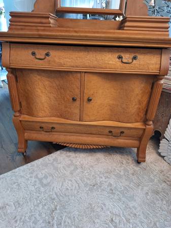 Really sweet victorian wash stand. In very good condition. Drawers at top and bottom. Double doors in center. On Original casters.