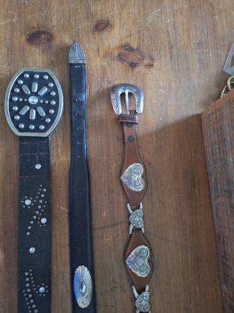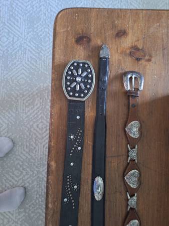 Choice of 3 belts. These are vintage Brighton belts. Price firm. Belt with parts 39 in, Indian silver, 43 1/2 in. Black belt, 40 1/2. These.measurements are end to end.