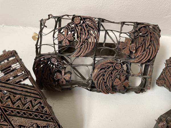 5 metal/copper boutique stamps in various sizes ranging from 5 inches wide to 8 inches wide.