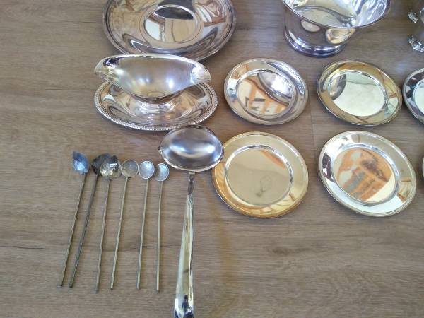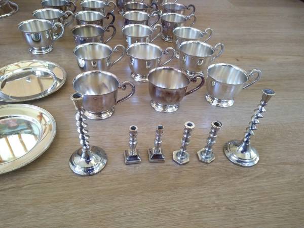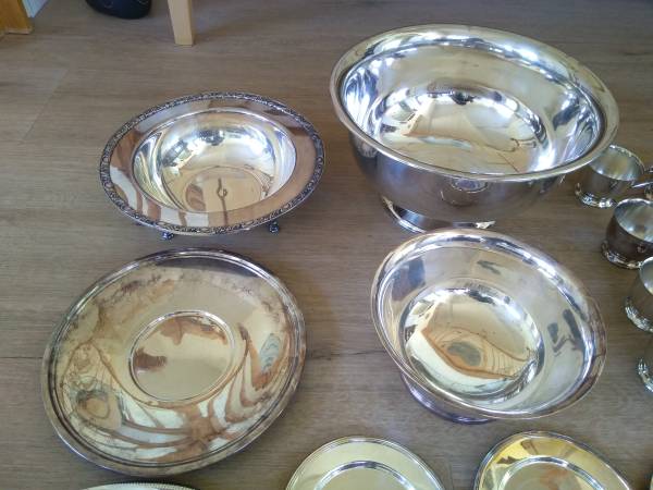 22 pcs silverwares (plates, bowl, candle holers, etc.) are by other maker, some piecee have tarnish.