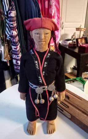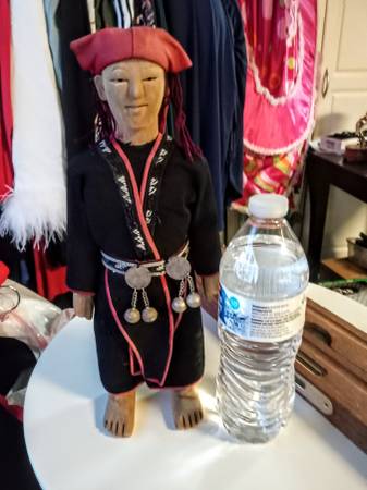 NO SHIPPING OR MEET UPS IN YOUR CITY STRICTLY PICK UP ONLY IN DISCOVERY BAY Vintage Asian doll, made of a very lightweight wooden material. Water bottle for size reference. PRICE IS FIRM