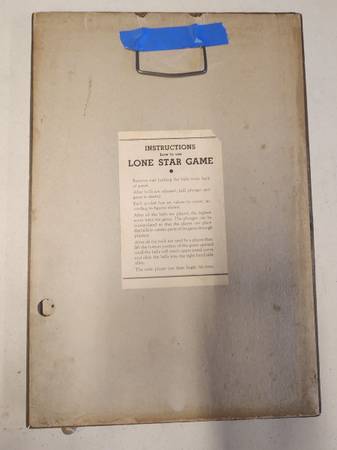 Vintage wood and paper litho Lone Star pinball game. It has bright & colorful graphics; 7 pinballs and retains most of the instruction label on the back board of this toy. Made by Grappo Toys,...