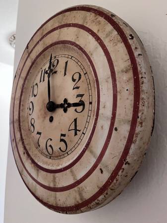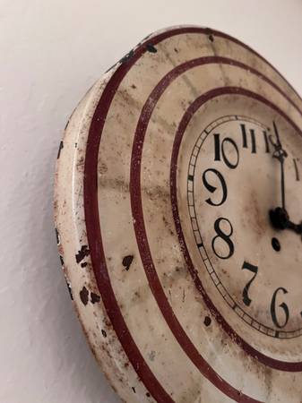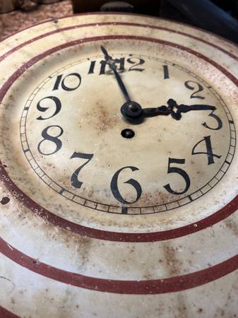 This is a rustic antique wind up wall clock from France. All original dials. No key to wind it so it is untested. Beautiful patina. Or restore to its original glory. If interested please call. Do...