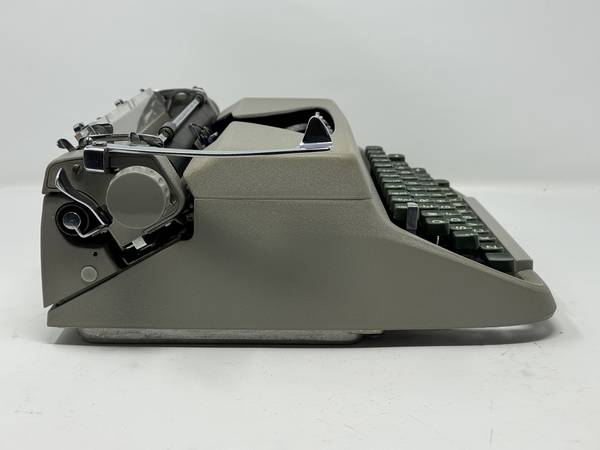 This listing is for a Serviced Facit TP1 typewriter with its carrying case. This machine sports a Swedish QWERTY keyboard. The serial number is: p.204843 which puts this machine as made in 1958. This machine sports an elite/12 CPI typeface.