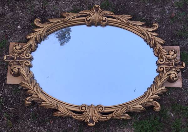 Beautiful hard to find Rococo Hollywood regency style vintage gold resin framed mirror. good condition for age. Roughly 60-70 years old. 40” wide 31” tall 2” depth to wall. Thanks for looking