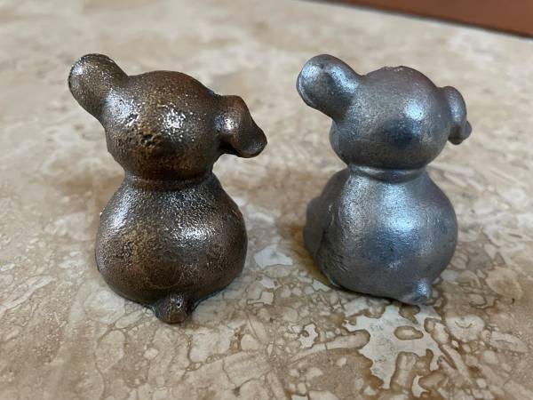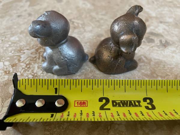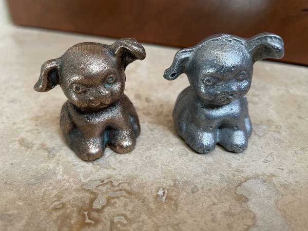 Rare find carnival prize dogs from the very early 1900's: one is silver lighter weight metal for 2nd prize and the other a very heavy metal bronze metal 1st prize winner…..they were carnival games in the very early 1900’s made by Hubley. If you collect the rarity these are cool piece of history! Click on MORE ADS BY THIS USER.