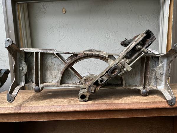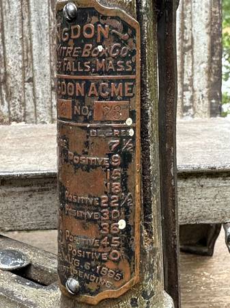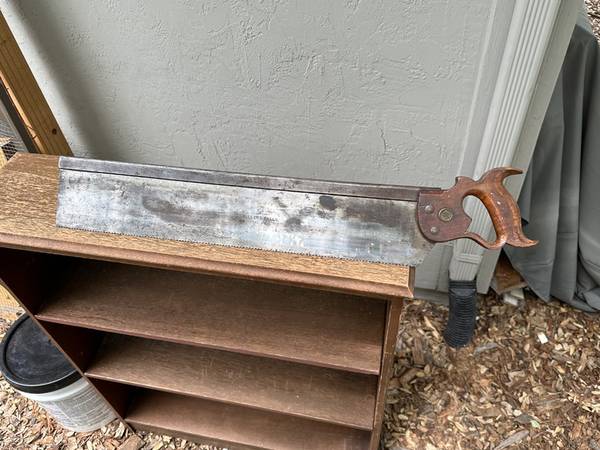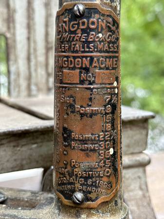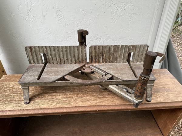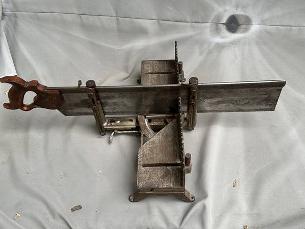 This is complete, and in good working condition. My father purchased it from an itinerant carpenter around 1920 in North Dakota. He used and maintained it regularly, and I've used it sparingly. The saw is the original Miller Falls 24" backsaw and is in excellent condition. The box can be set to any angle 0 to 45 degrees, left or right. The saw guide towers hold the saw precisely, and allow it to cut below the box bed, through material fully, without allowing the saw to encounter the bed and damage the teeth.