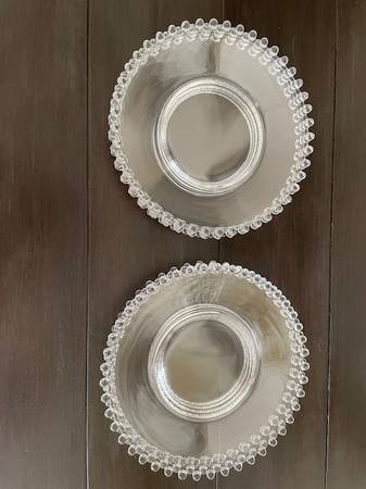Candlewick, Imperial Glass Dishes $20 - 11 inch bowl $15 - 9 inch bowl $40 - 8 inch plates, set of eight All pristine perfect.