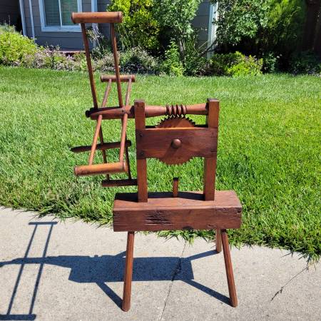 This amazing very antique 4-arm Yarn Winder is likely from the early 1800’s, possibly earlier. It is made entirely by hand from oak and other woods, and is all wood pegged - no nails were used. This one is a bit rustic, designed to be used. Yarn winders were created to wind yarn into skeins during the times of cottage industries pre-industrial revolution. The yarn winder is in excellent condition especially for its age! No cracks or broken parts. The gears are in good working order, which is rare for these old devices. It does have a number of tiny wood worm holes, part of the charm and authenticity of being a true antique. It's museum worthy!