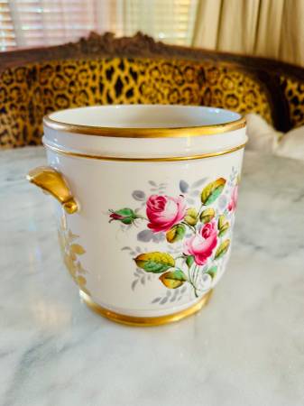 Excellent condition antique Limoges France champagne holder w 24k gold and roses. 9” x 9”
