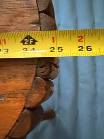 WHY YOU WILL LOVE THIS: One of a kind heirloom quality piece with documented provenance incredible craftsmanship and history rustic organic design that has truly stood the test of time perfect as a statement side table or collectible antique