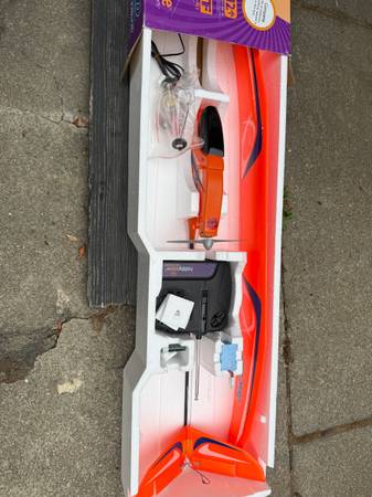 Brand new in the box. Ready to fly kit. Complete. Crash resistant foam. Great for beginners or kids learning to fly RCs planes.