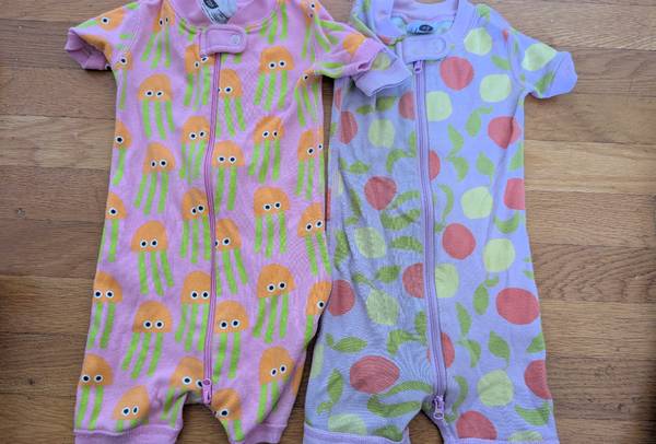 18. $5: 2 Hanna Andersson short sleeved pajama onesies in good condition.