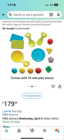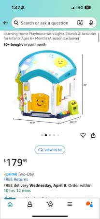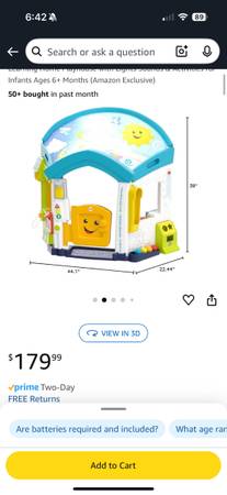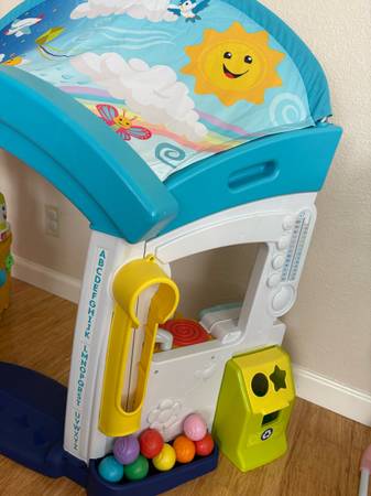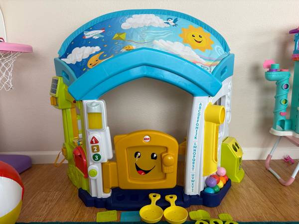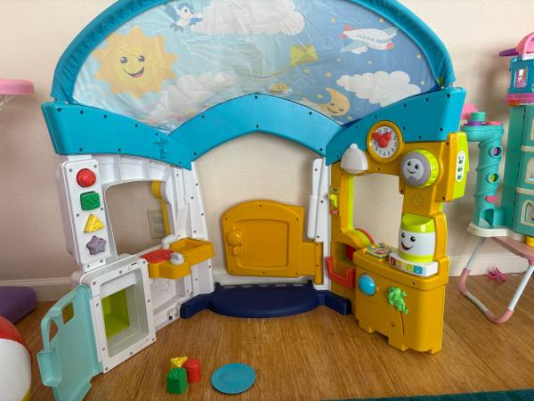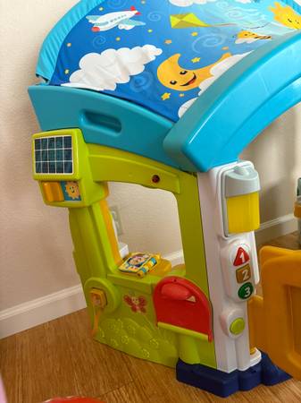 Interactive Fisher- Price playhouse with lights and sounds, works great! (batteries not included). Ages 6-36 months. Sticker on front door has some damage but other than that is is in great shape. Includes all accessories plus some extras as I purchased some replacement parts directly from Fisher-Price. Smoke free home. Serious inquires only please! Scammers, don’t bother.