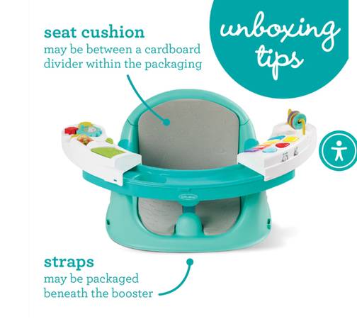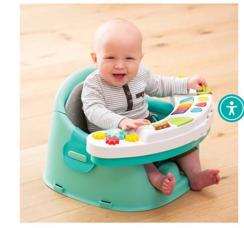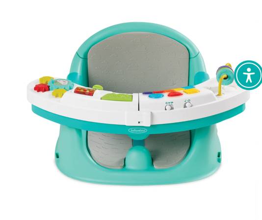 Selling our like-new Infantino Music & Lights 3-in-1 Discovery Seat & Booster, Toddler Booster Seat for Dining Table or Kitchen Chair, Baby Activity Center & Snack Tray, ages 4mo - 4 yrs.
