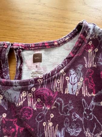 -Purple cotton dress with animal designs, Tea brand