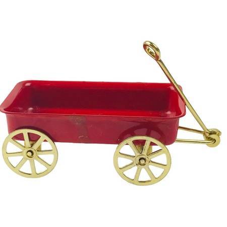 Vintage miniature metal wagon by Midwest that works--wheels fully rotate when you pull or push on the handle. Measurements (inches): Height (total) - 1 Height (inside of wagon) - .5 Width (wagon...