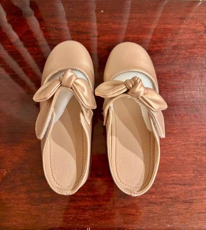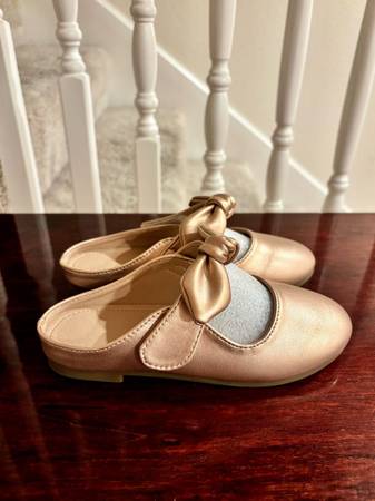 Adorable rose gold shoes featuring cute bows. Brand New. Size 10.5