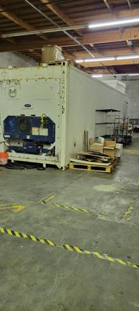 Refrigeration container in best working condition with standard 36 inch freezer man door on the side for easy access.