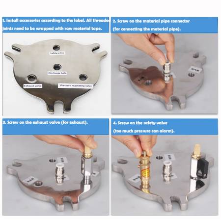Precise controllable pressure regulator. The pressure regulator is equipped with pointer pressure gauge, and the pressure in the pressure barrel is controlled visually.